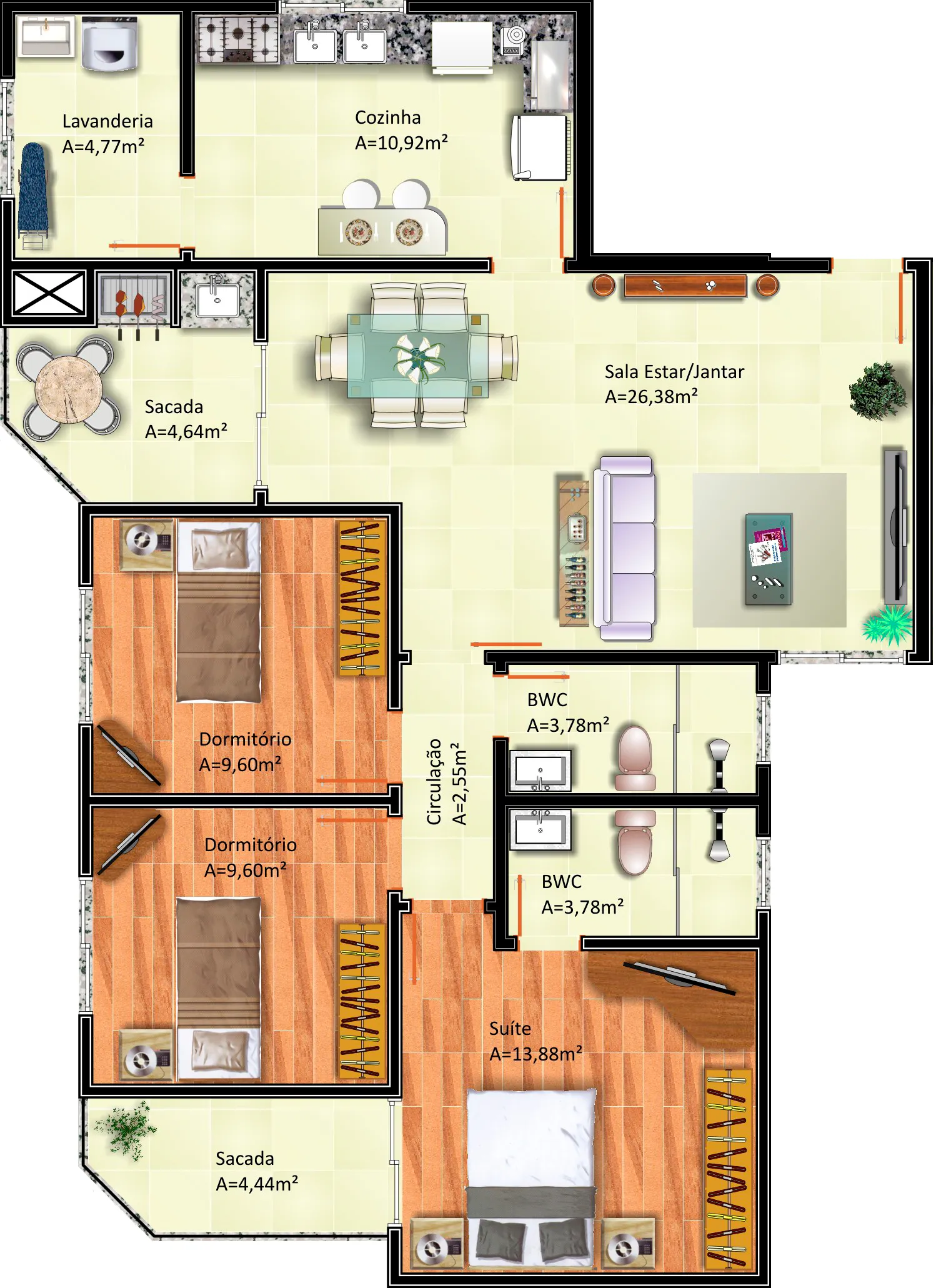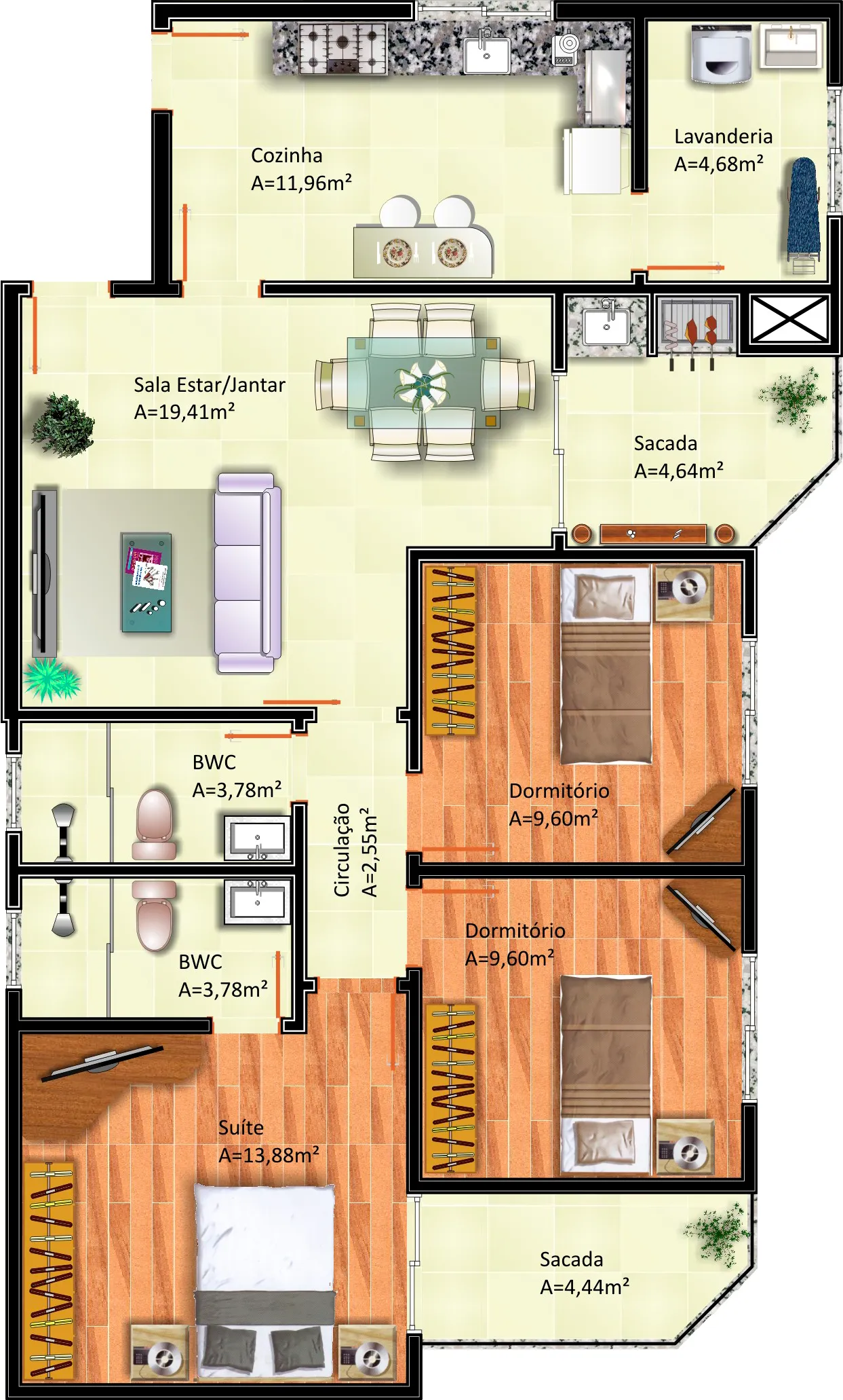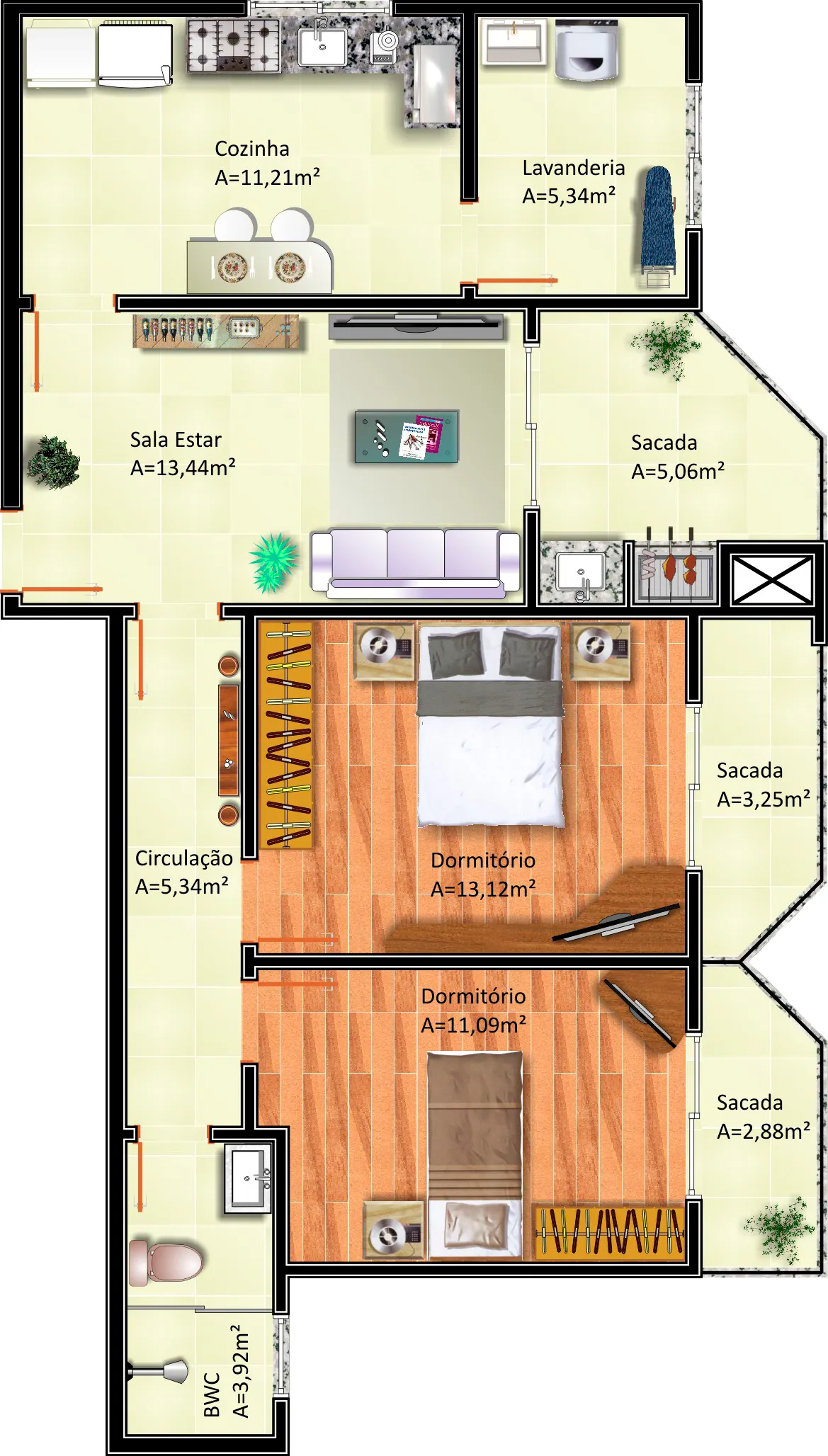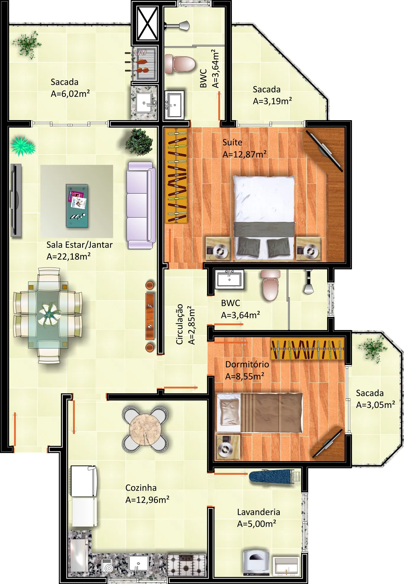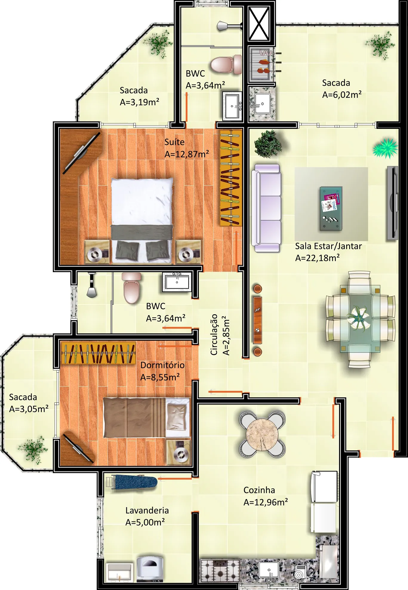 Com área total de 12.489,66m² e 17 pavimentos, sendo térreo e sobreloja comerciais, 04 pavimentos de garagens, salão de festas, 10 pavimentos de apartamentos com 06 apartamentos por andar, totalizando 60 apartamentos. Área de lazer e playground. Obra em andamento.