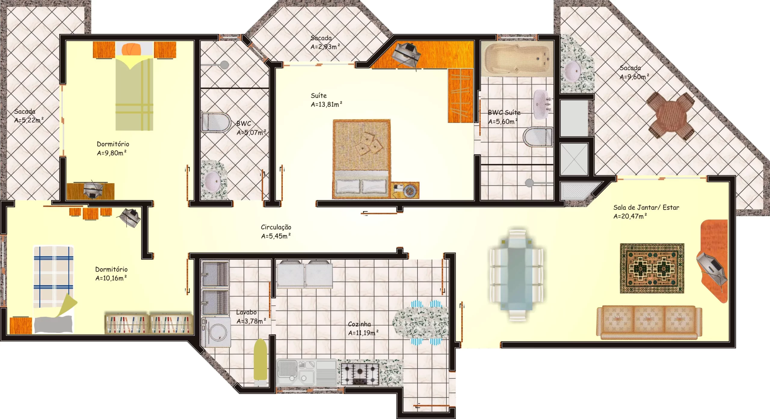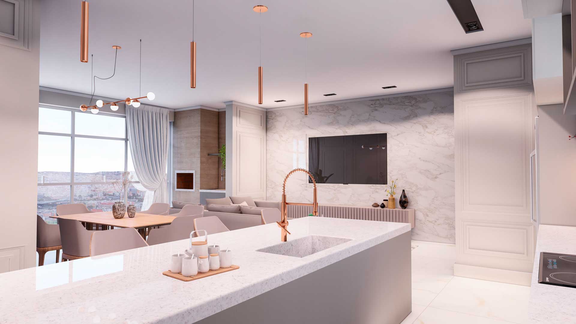 Com área total de 7.758,42m e 18 pavimentos, sendo térreo e sobreloja comerciais, 03 pavimentos de garagens, salão de festas e 12 pavimentos de apartamentos por andar, totalizando 24 apartamentos. Elevador panorâmico, 02 vagas de garagem por apartamento, área de lazer e playground. Obra concluída em 2013.