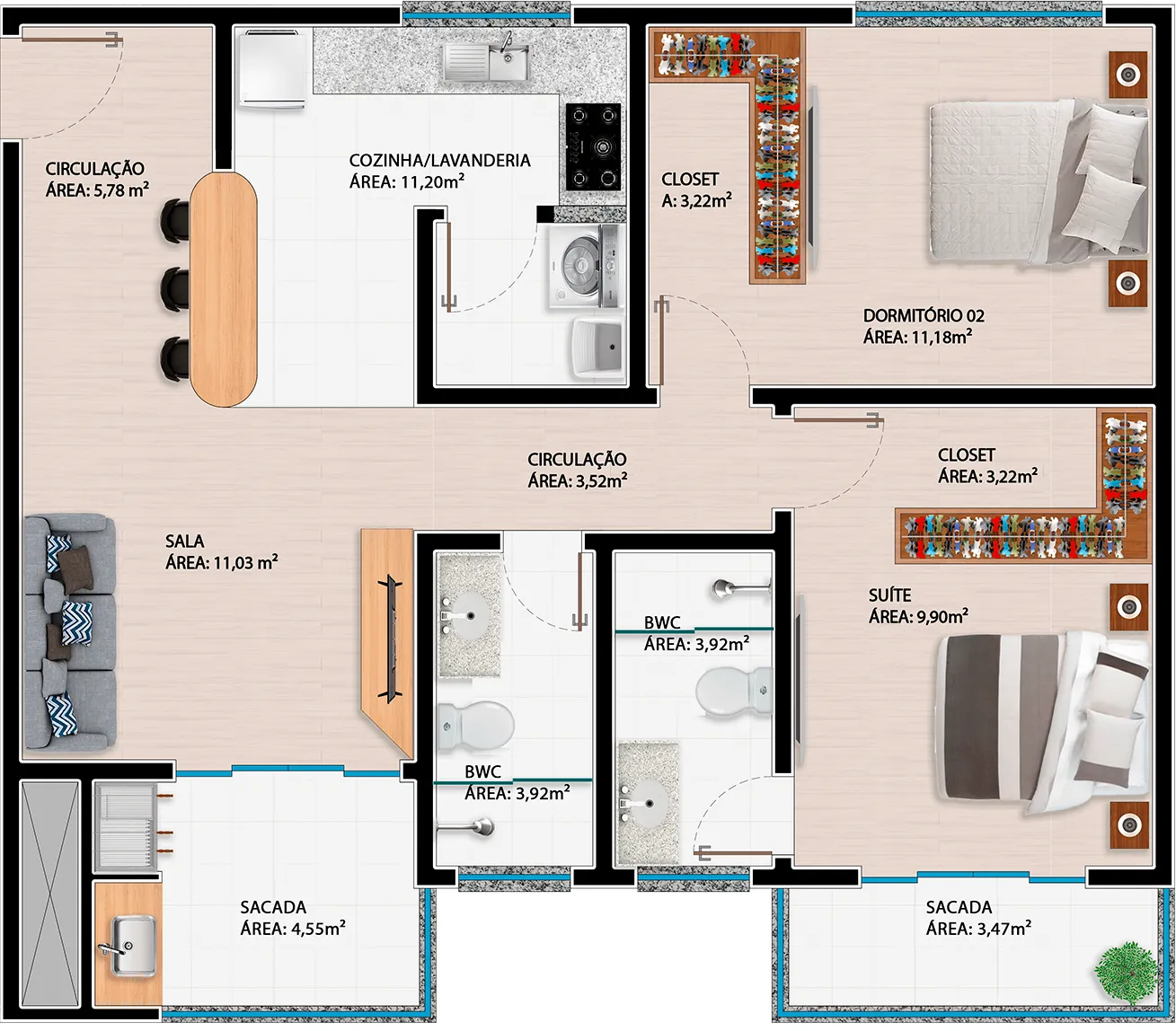 O edifício Ursula Waldraff também contará com salas comerciais, garagens com elevador para automóveis, área social equipada com diversas opções de lazer, além de piscina com vista privilegiada.