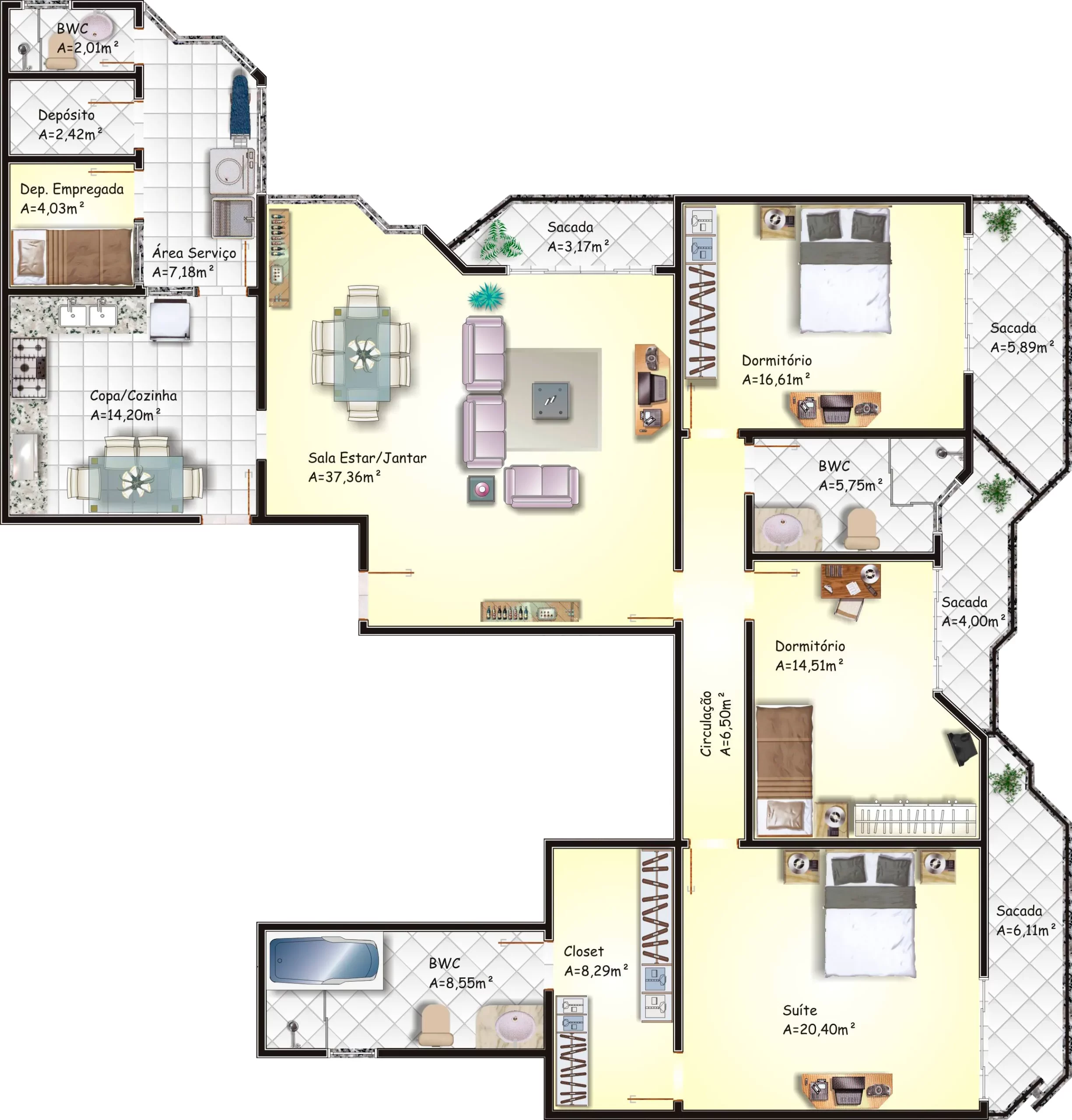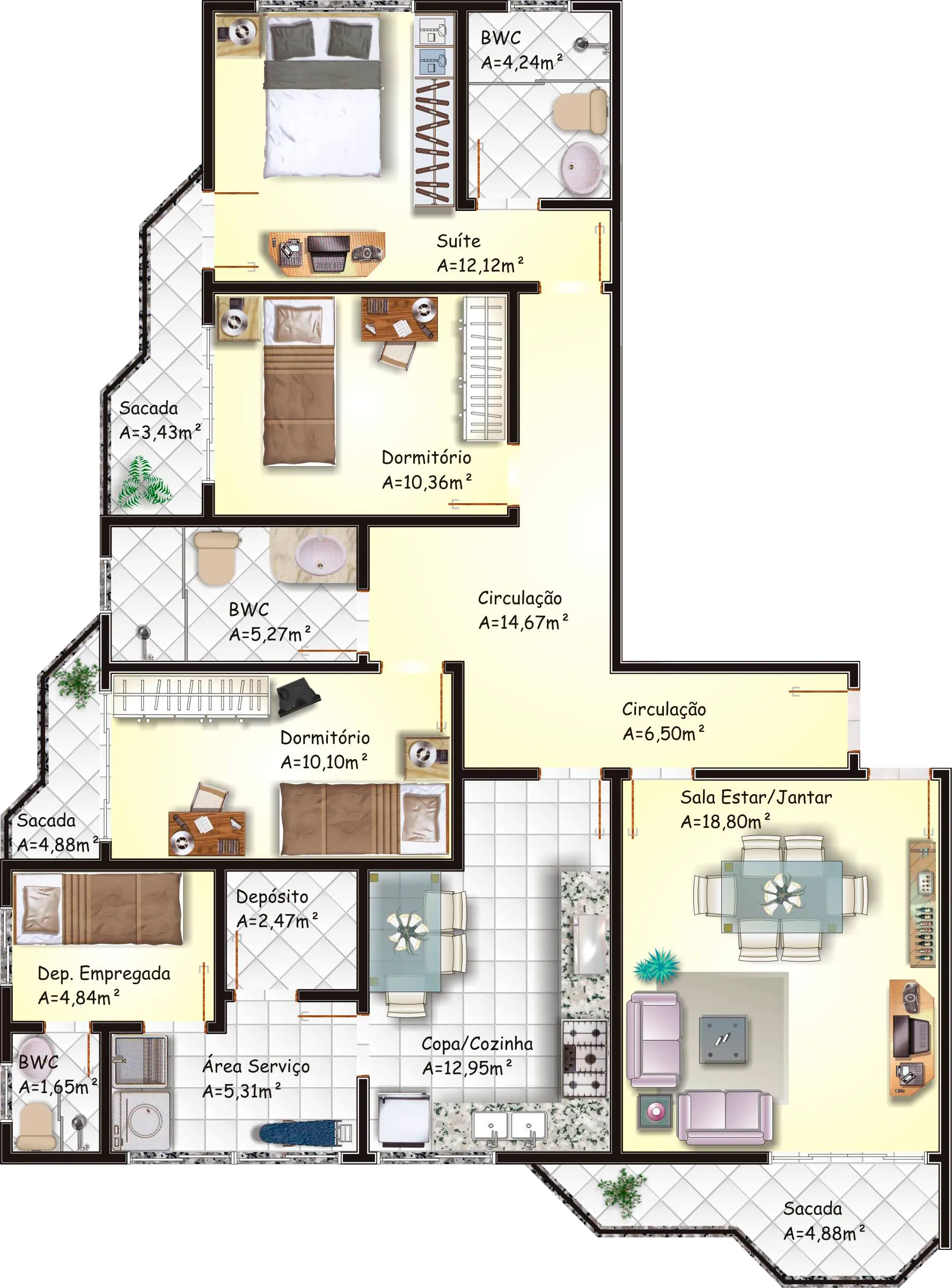 Com área total construída de 2.700 m² e 08 andares, sendo subsolo destinado a garagens, térreo e 06 pavimentos com 02 apartamentos por andar, totalizando 12 apartamentos. Prédio concluído em dezembro de 1999.