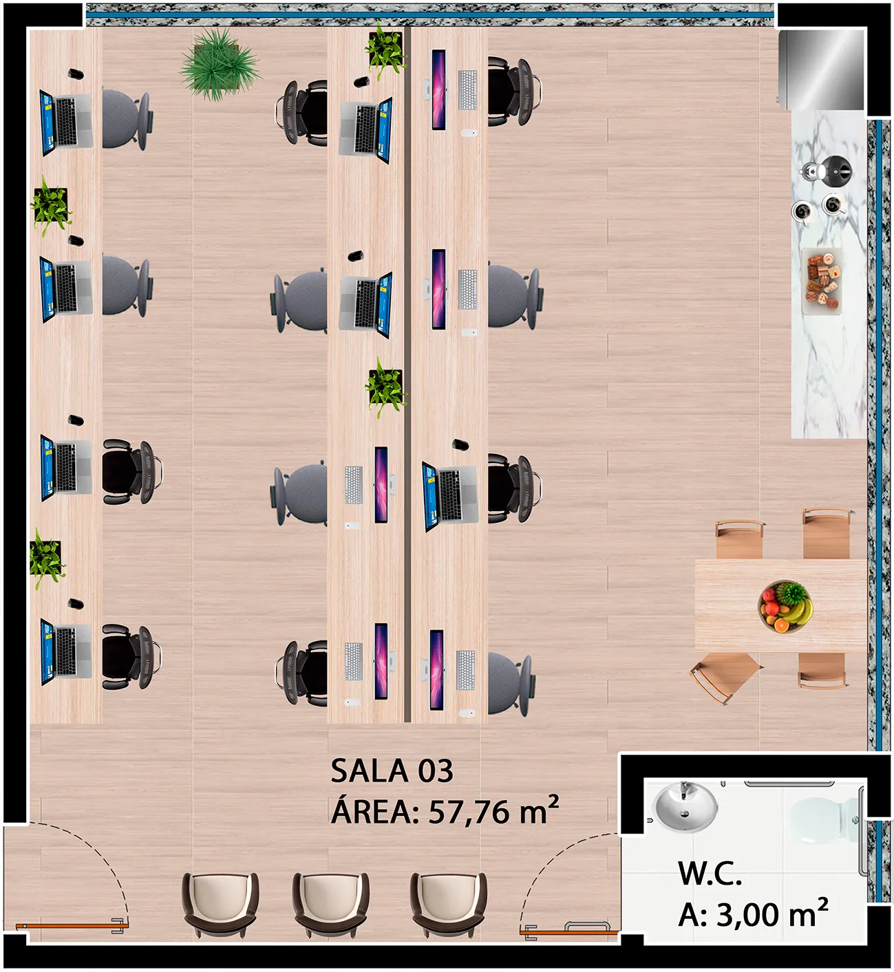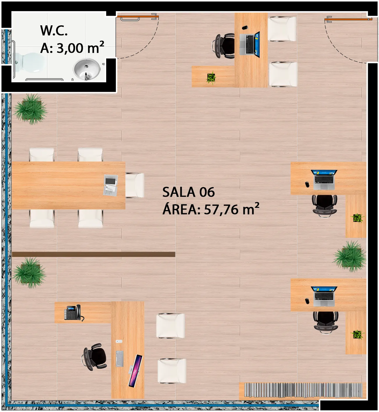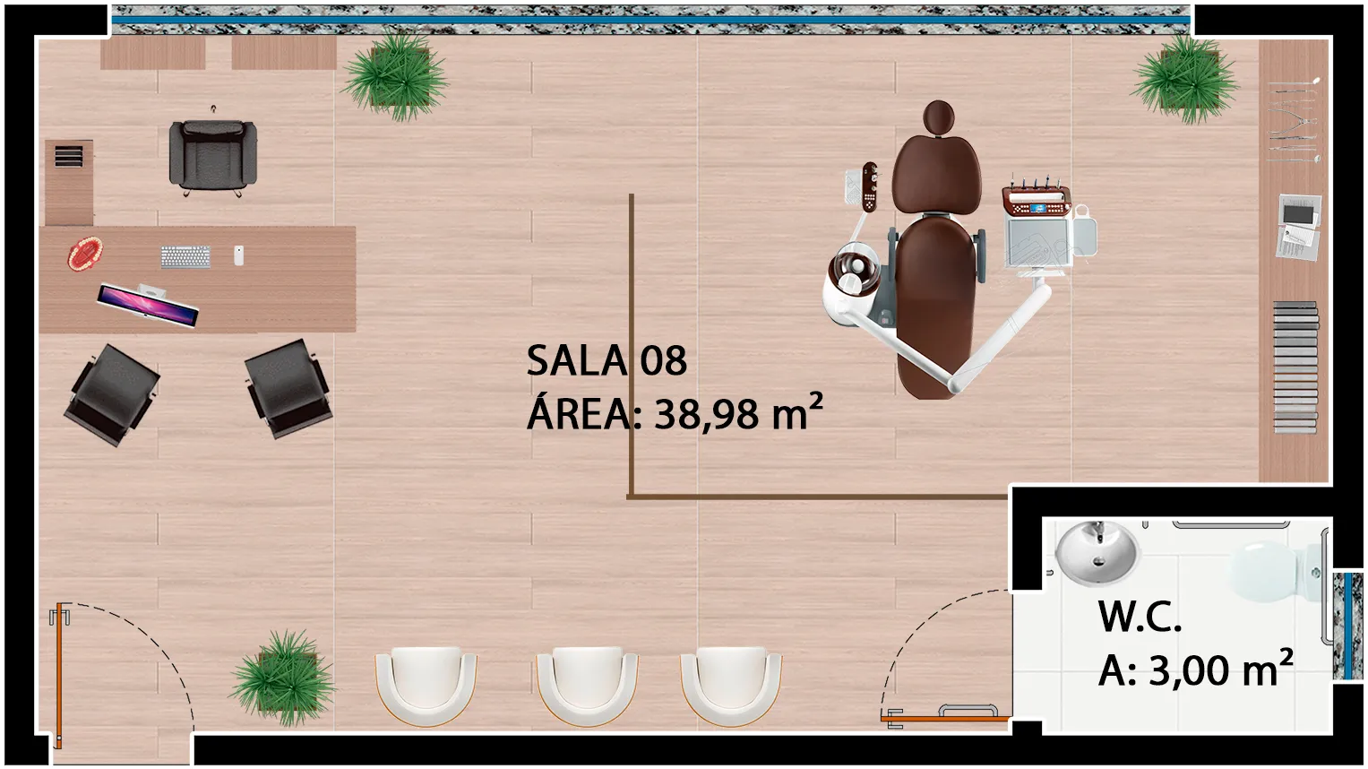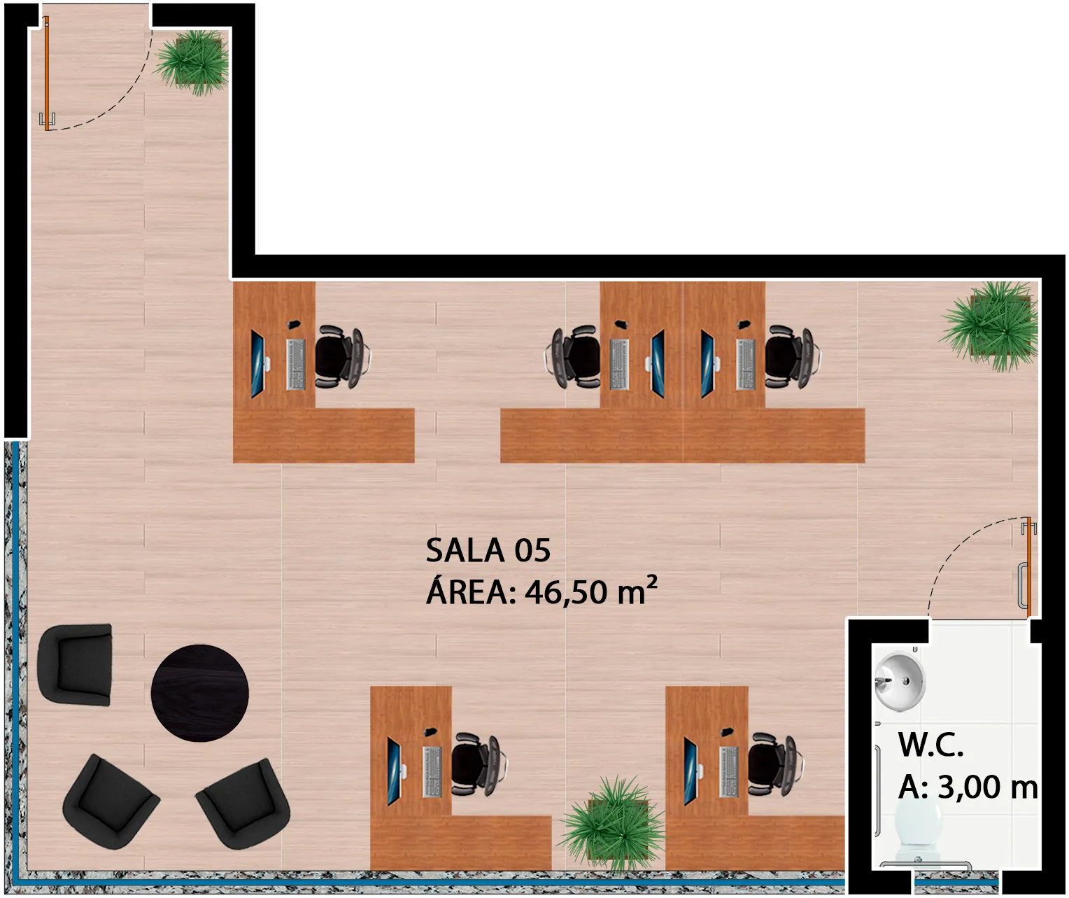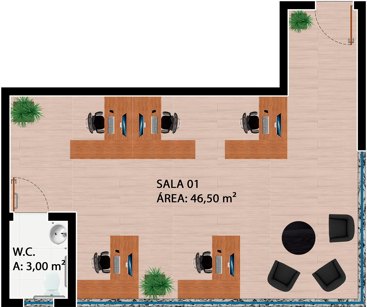 O edifício contempla duas torres, com fachadas envidraçadas, criando iluminação natural e vista privilegiada para todas as salas comerciais, além de gerar imponência e destaque para a cidade. O conceito utilizado para a ornamentação dos edifícios foi pensado para complementar e facilitar os acessos às torres, de forma prática e agradável.